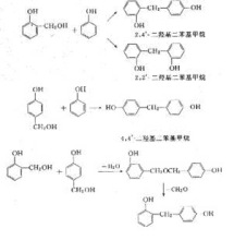 縮合及縮聚反應(yīng),隨反應(yīng)條件的不同可以發(fā)生在羥甲基苯酚與苯酚分子之間,也可發(fā)生在各個(gè)羥甲基苯酚分子之間。包括: